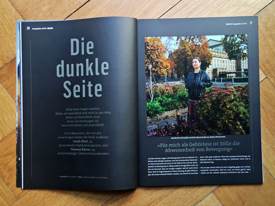 Reportage über eine gehörlose Psychotherapeutin für das Magazin »Perspektive« der Baden-Württemberg Stiftung